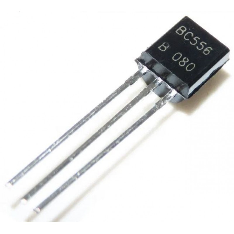 BC556 is a semiconductor device used to amplify or switch electronic signals and electrical power. It is composed of semiconductor material usually with at least three terminals for connection to an external circuit. A voltage or current applied to one pair of the transistor's terminals controls the current through another pair of terminals. Because the controlled (output) power can be higher than the controlling (input) power, a transistor can amplify a signal. Today, some transistors are packaged individually, but many more are found embedded in integrated circuits.
