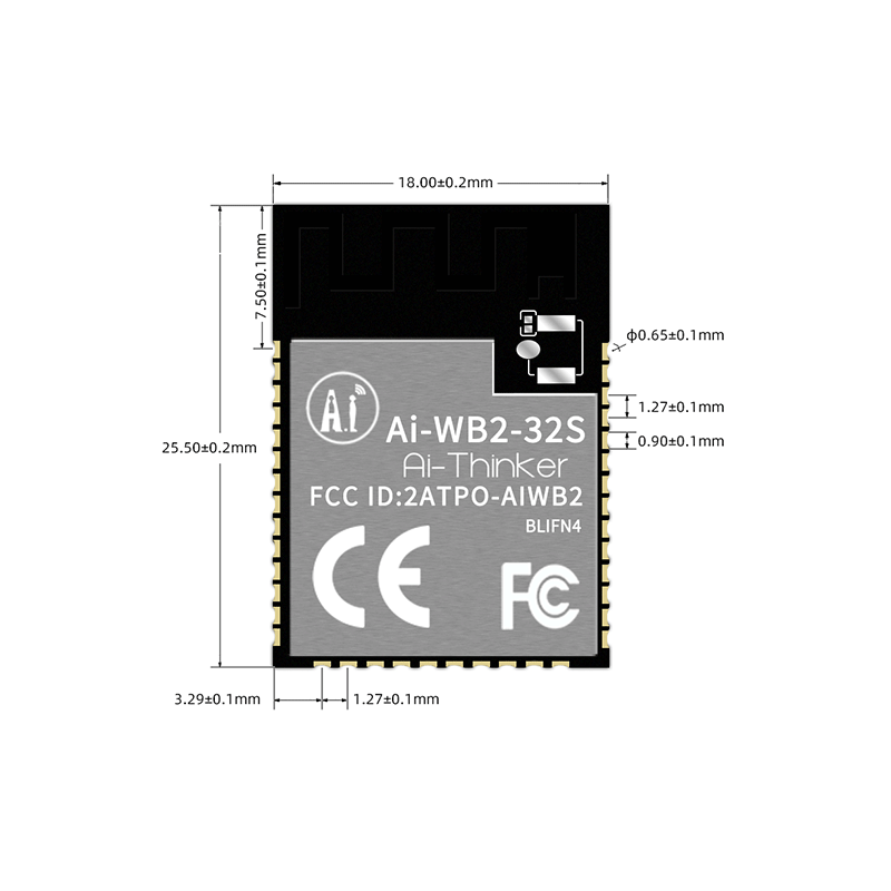 Ai-WB2-32Sis a Wi-Fi and BT module developed by Shenzhen Ai-Thinker Technology Co., LTD.The module is equipped with BL602 chip as the main processor and supports Wi-Fi.802.11b/g/n protocol and BLE 5.0 protocol.The BL602 chip has a low power 32-bit RISCCPU, 276KB RAM, and a variety of peripheral interfaces including SDIO, SPI, UART, I2C, IR Remote, PWM, ADC, DAC, PIR, and GPIO.It can be widely used in the Internet of things (IoT), mobile devices, wearable electronic devices, smart home and other fields.