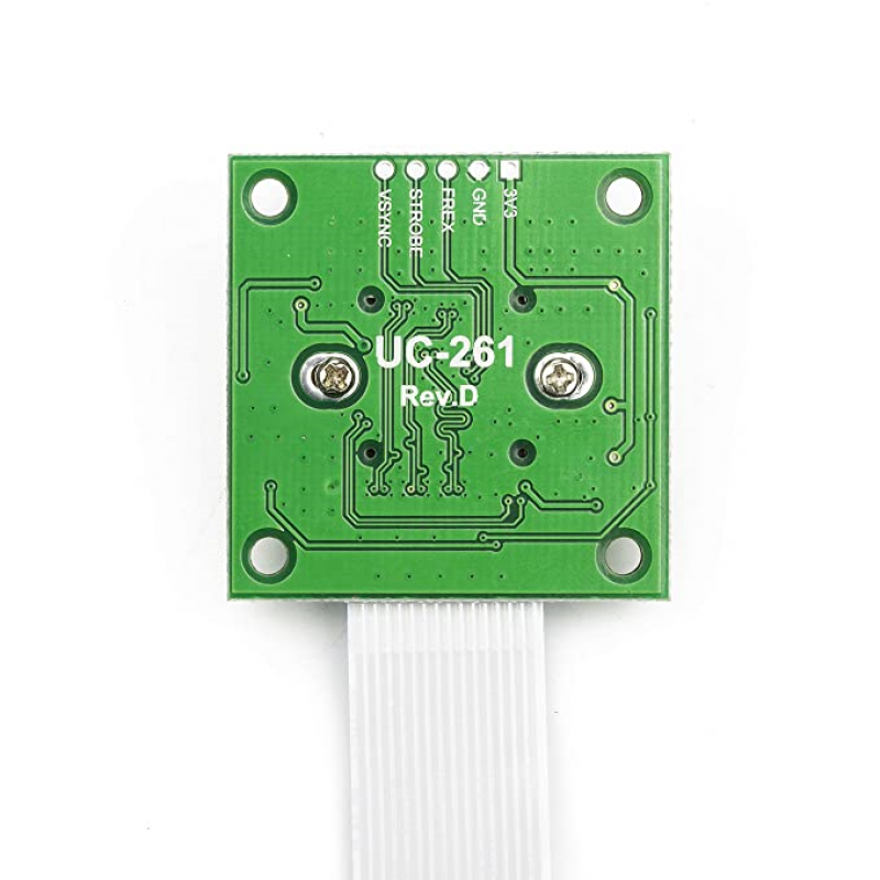 - Connection by a flat ribbon cable to 15-pin MIPI Camera Serial Interface (CSI) connector S5 on Raspberry Pi computer board