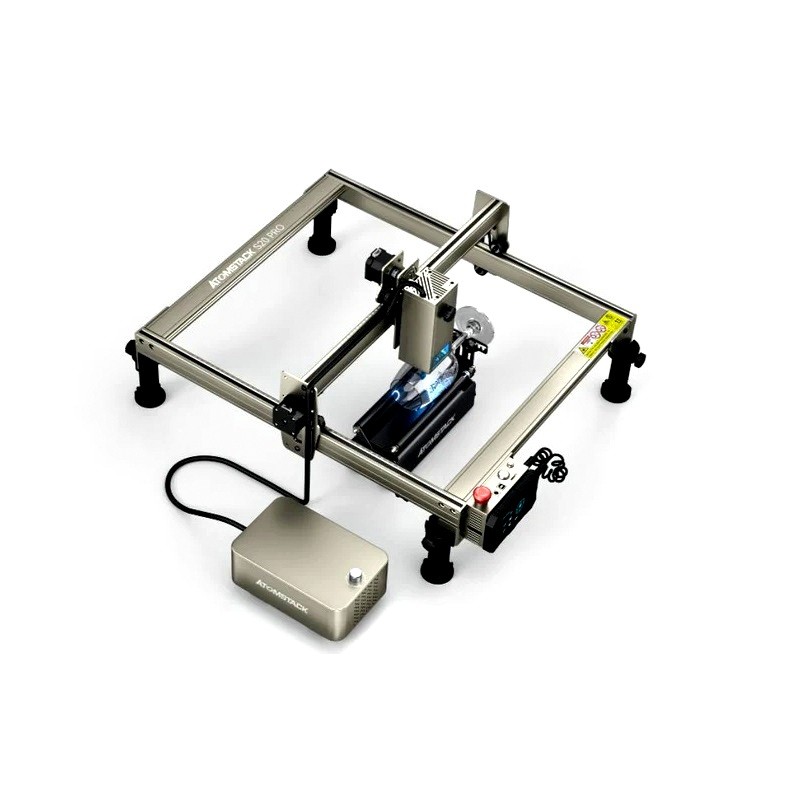 Powerful ATOMSTACK S20 Pro X20 Pro A20 Pro 130W laser engraver with the worlds first quad-core diode. This laser engraving machine with F30 Pro Upgraded Air Assist kit can easily cut 12mm wood and 8mm acrylic and even cut 0.05mm thin sheet metal.Higher Accuracy and Stability by Durable Mechanical Structure. Supporting 100+ materials: Wood, Metal, Acrylic, Glass, Leather, etc. Easy to use, smart, powerful and fast cutting machine for home, business and school. The laser output power soars up with the latest generation of four 6W laser coupling technology, is able to cut off 12-15mm thick tungsten board as well as the 8mm thick black acrylic board with only one pass, and even cut the 0.05mm thick stainless steel sheet