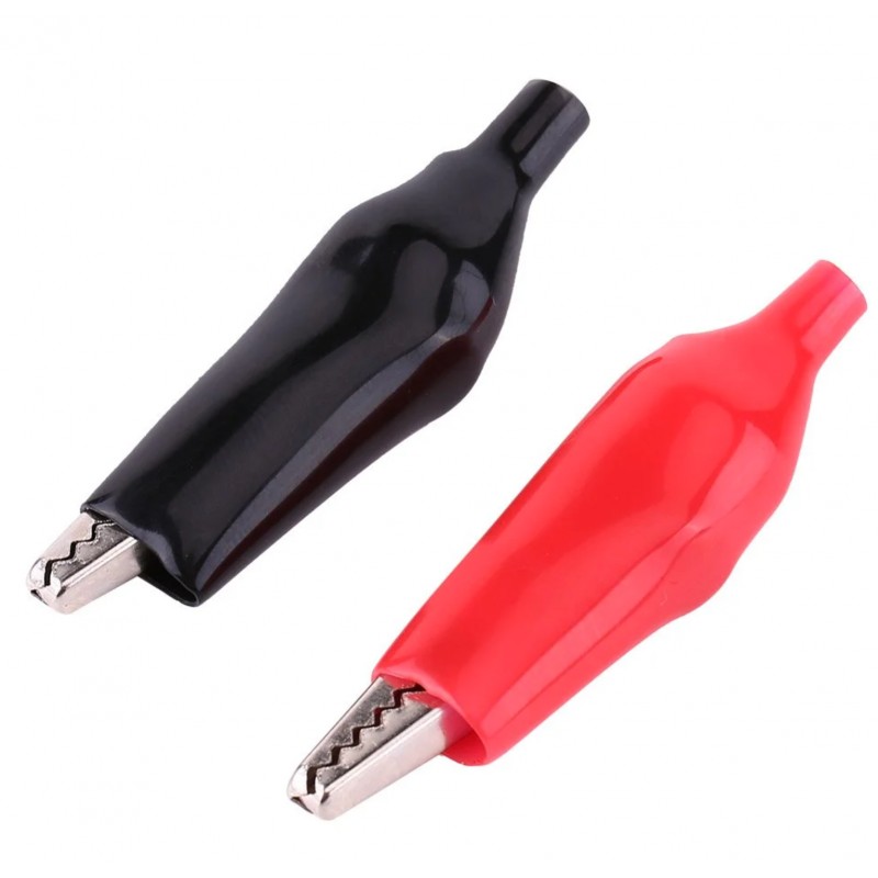 Crocodile Clip mostly use in experimental Instrument cors in labs such as Variable DC Power Supply as well as in many DIY projects for temporary connections of power supply or any other required connection. With its Specific Red and Black insulating cover, one can easily manage to make and Break the connections with no polarity conflicts, also avoids the damage or Short circuits.