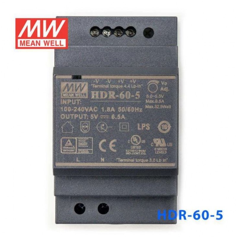 HDR-60-5 Mean well SMPS - 5V 6.5A 32.5W Din Rail Metal Power Supply