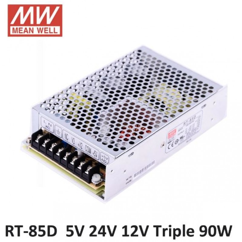 RT-85D Mean Well SMPS (5V 6A), (24V 2A) and (12V 1A) - 90W Triple Output Metal Power Supply