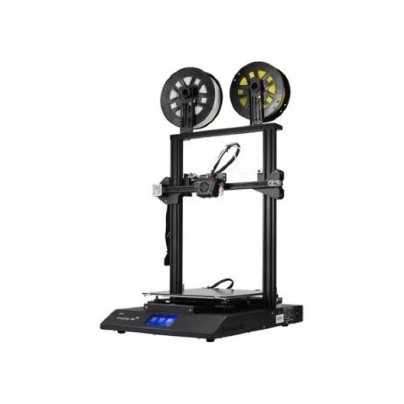 CR-X Pro comes with the same type of dual extruder as its predecessor, a single-nozzle, dual-colour design. The filament is fed through Bowden tubes from the extruder, meeting in a Y-coupler before passing into the hot end itself. It has also having a dual extruder in one nozzle and is capable of printing 2 different colours at the same time. Through software algorithm control, slicing software editing, the machine can support four modes of colour printing: mixed colour, dual-color, layered colour, and single colour to achieve customized two-colour 3D models.
