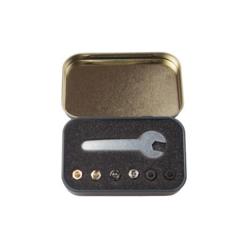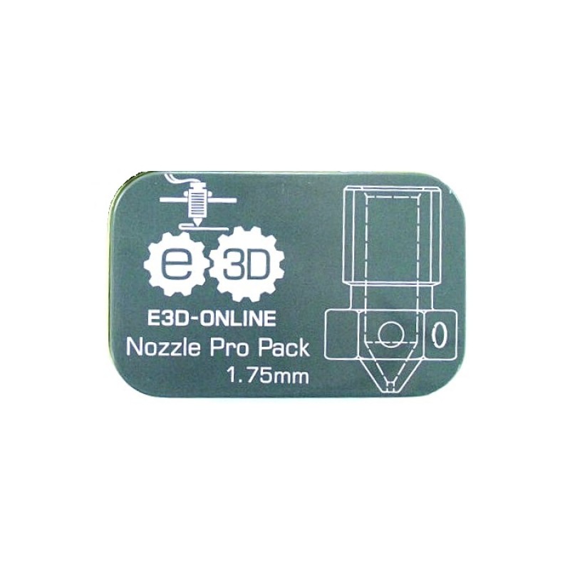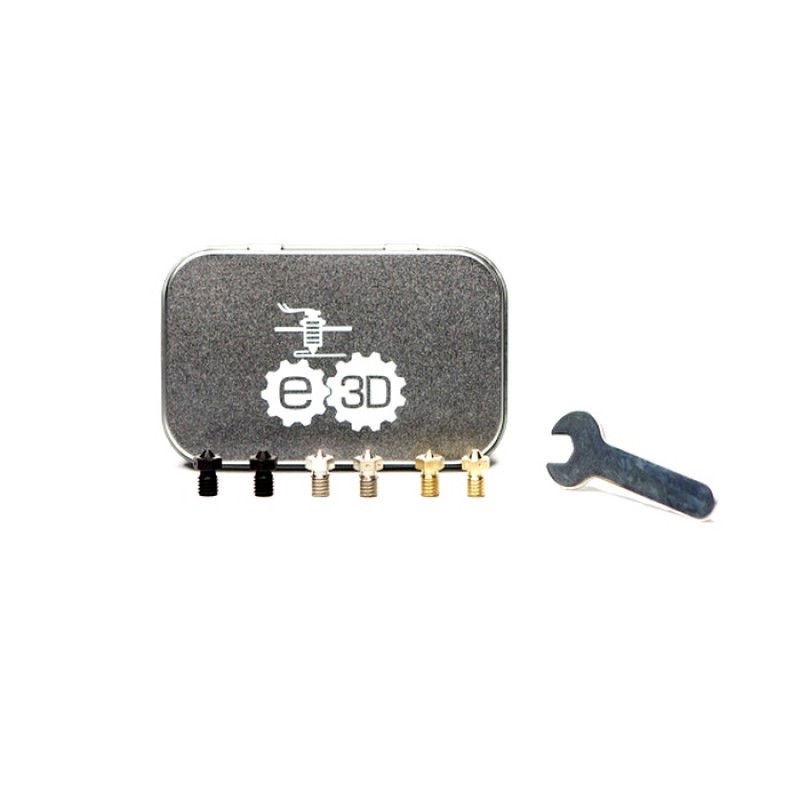 E3Ds most popular and experimental nozzles are now available in a kit! Saves 10% when compared to buying individually! Also includes a handy storage tin and spanner.