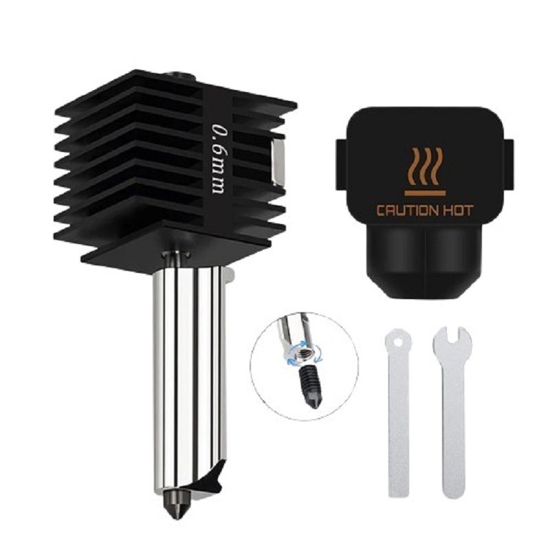 The Bambu Lab Hotend with Hardened Steel Nozzle (0.6 mm) for the A1 Mini is a high-performance upgrade designed for users looking to improve their 3D printing experience.The Bambu Lab Hotend with Hardened Steel Nozzle (0.6 mm) for the A1 Mini is a high-performance upgrade designed to enhance your 3D printing experience, especially when working with abrasive materials. Featuring a durable hardened steel nozzle, it is built to withstand wear from composite filaments such as carbon fiber-filled, glass-filled, and other tough materials, ensuring a longer lifespan compared to standard brass nozzles.