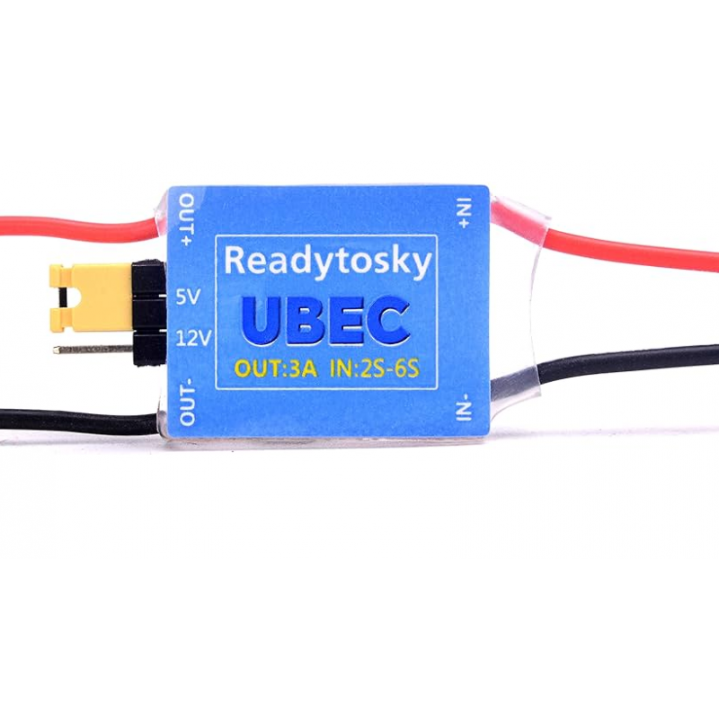 This is a 2-6S 5V/3A and 12V/3A Switchable UBEC from ReadytoSky. The module is designed with an advanced switch-mode DC-DC regulator IC which eliminates the fear of overheating.