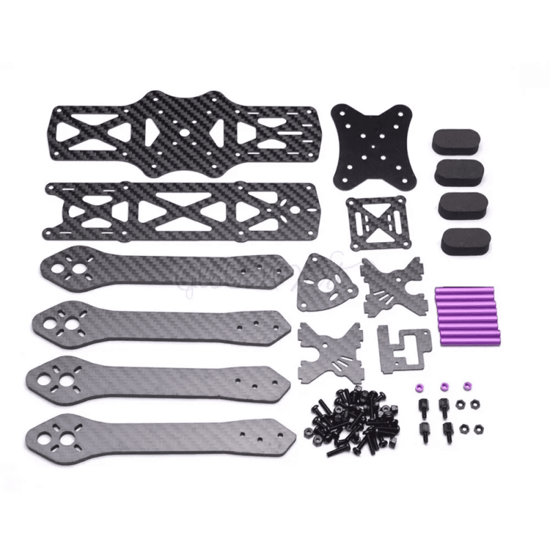 The carbon fiber is mostly accepted material for frame designing because of its high stiffness to weight ratio. The Carbon Fiber Frames are very rigid and improvestability and flight performance.