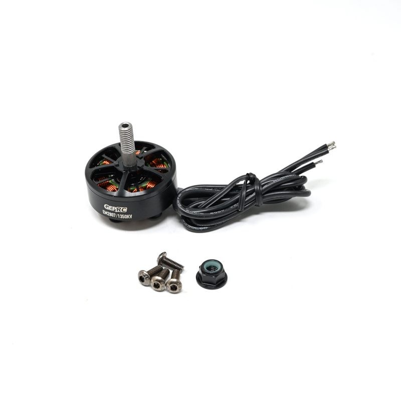 The GEPRC EM2807 1350KV brushless motor is designed for long-range FPV pilots seeking high torque, stability, and power efficiency. Built with a high-strength M5 steel shaft and N52H magnets, this motor ensures durability and strong magnetic performance. With a peak power of 1080W and a max current of 47A, it supports 7-8 inch propellers for smooth flights. The 12N14P configuration, NSK/NMB bearings, and 6S LiPo compatibility enhance its performance. Weighing 57g, this motor is ideal for FPV enthusiasts looking for reliability and power in their long-range builds.