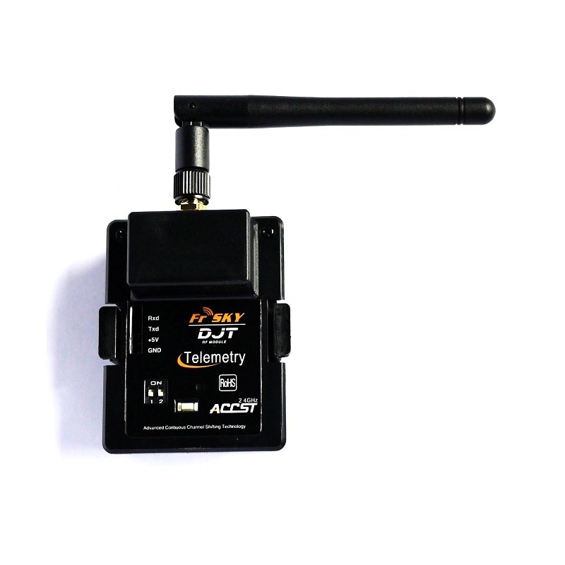 The DJT telemetry transmitter module is a great choice if your transmitter is compatible with the JR modules. (as well as Turnigy 9x/FlySky 9x/EMAX 9x). The Telemetry Radio System developed by FrSky provides an additional return link that is used for monitoring the Rxs voltage, poor receiver reception, temperature, location, speed and so on. The module is compatible with both the V8-series (non-telemetry) and the D-Series (telemetry) receivers.