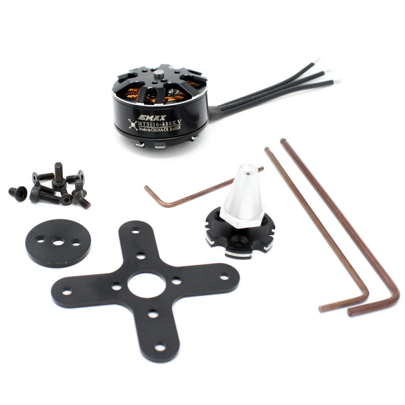 The EMAX MT3110 480KV Brushless DC Motor for Multirotors provides appreciable thrust and efficiency at an affordable price.