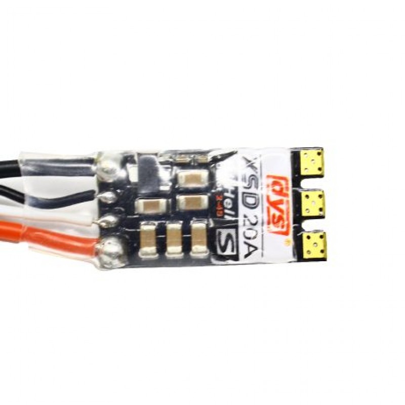 Take advantage of the latest DYS XSD20A ESC Solder Version BLHeliS development with these DShot-capable ESCs. The DYS XSD series speed controllers (ESC) have been designed for high-speed motors, which makes them ideal for racing drones. The ESCs utilize a high-performance Silabs EFM8BB21 microprocessor for smooth response and high-resolution throttle steps. They also come with BLHeliS firmware pre-flashed and support DShot300 or DShot600. Firmware can be upgraded by signal wire using a USB Linker.