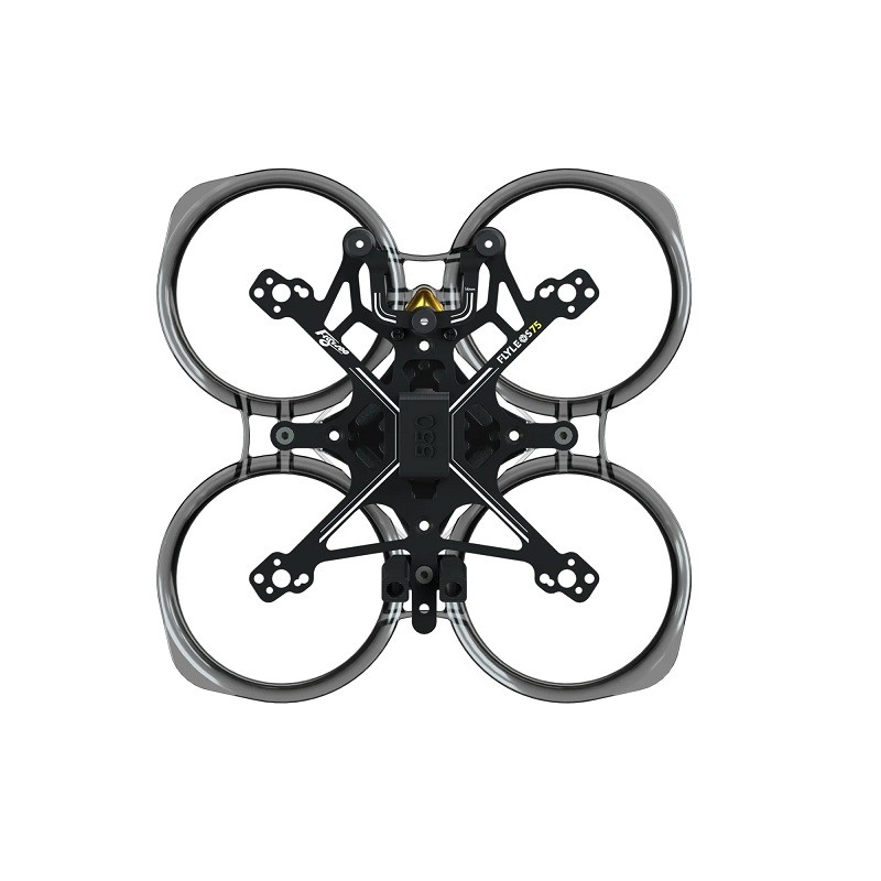 The Flylens 75 frame is a 1.6-inch whoop-type frame designed for indoor and narrow space flight. It is compatible with various mainstream digital and analog image transmission systems. The frame is equipped with an injection-molded protective ring and a carbon black treatment process.