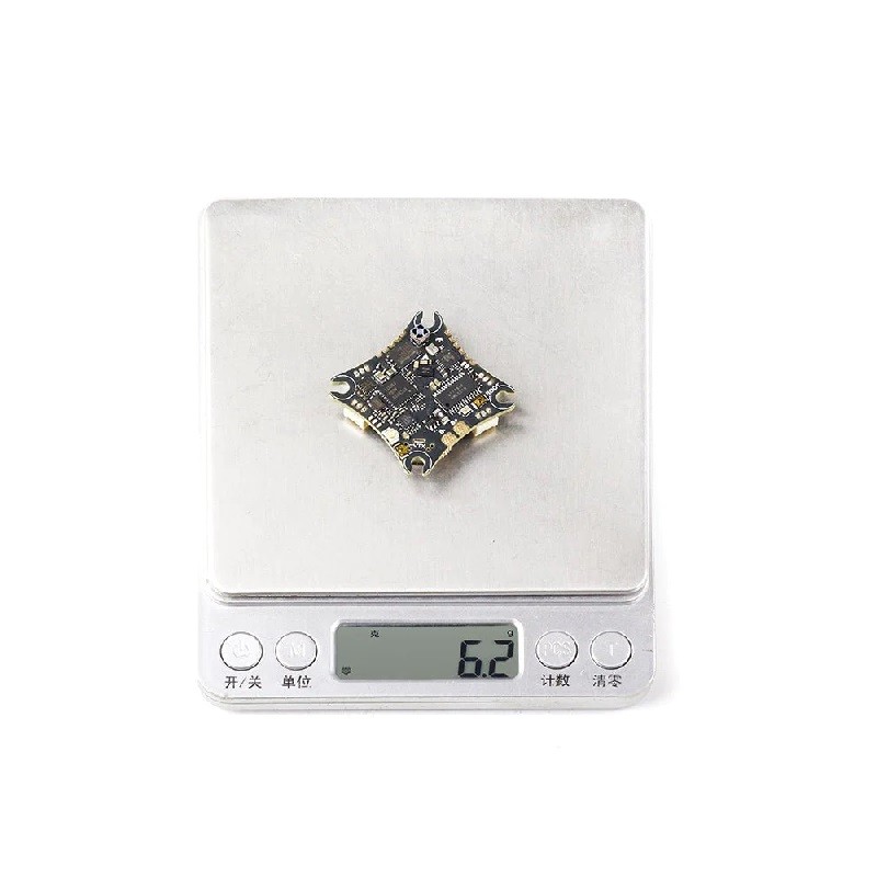 This is an ultra-light F411 5A 1S AIO integrated brushless flight controller, integrated SPI Expressers 2.4G receiver, and integrated 200mW 5.8GHz adjustable power video transmission at the same time. The SPI ELRS receiver uses patch ceramic antennas to solve the short-distance problem of the ancient SPI D8/D16 protocol. The ELRS receiver superimposes 200mW high-power video transmission to easily fly around the harsh indoor environment. The built-in receiver has the characteristics of high sensitivity, high refresh rate, and low delay, and is loved by many FPV enthusiasts. This AIO flight controller is fully compatible with 65/75/lightweight toothpick drone/whoop series and other frames on the market.