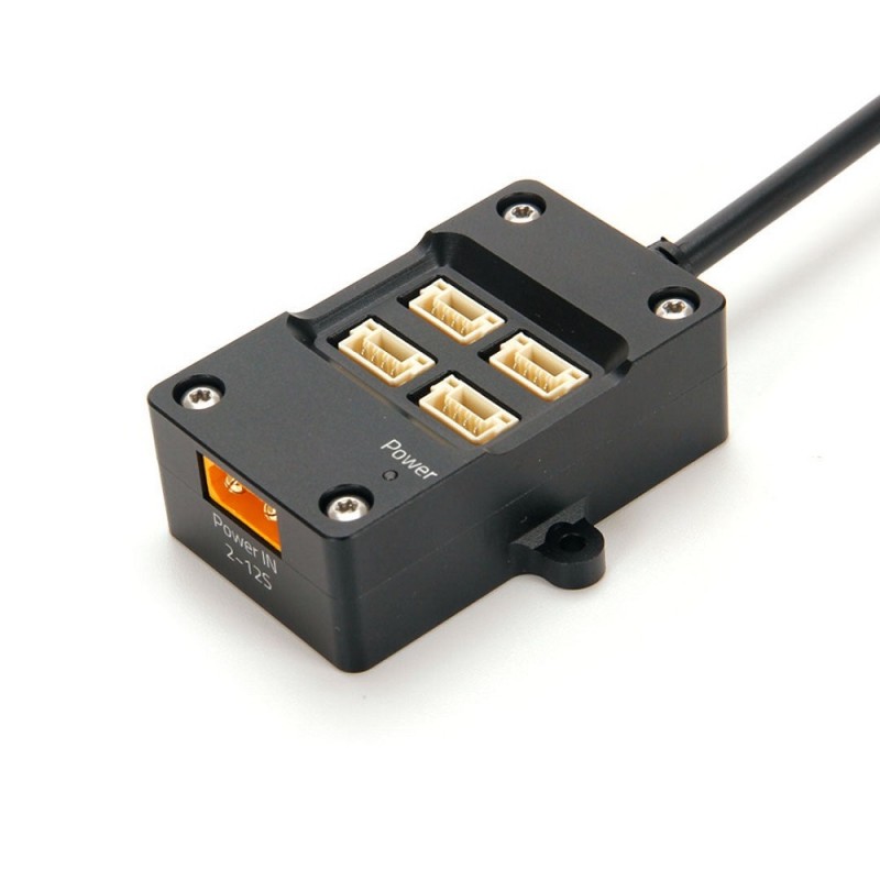The Holybro CAN Hub is a powered CAN port expansion module developed for various flight controllers and their supporting peripherals. This CAN Hub is integrated with a step-down power supply. It supports 2-12S power input and 5V CAN power output and can expand one CAN port into up to four ports while providing stable 5V/1A power for each port with its dedicated power input.