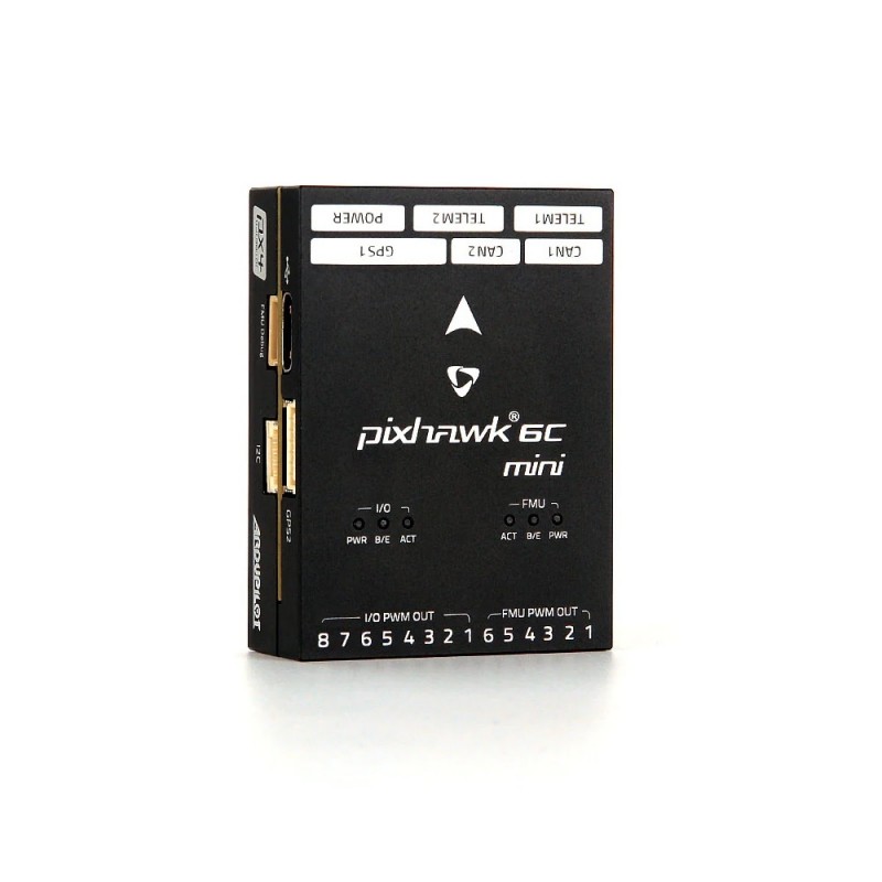 The Pixhawk 6C Mini is the latest update to the successful family of Pixhawk flight controllers, based on the Pixhawk FMUv6C Open Standard and Connector Standard. It shares the same STMH743 microprocessor and sensors as thePixhawk6C. Compared to the standardPixhawk6C, this Mini version has a built-in PWM header, and some ports have been removed in order to fit this Mini form factor.