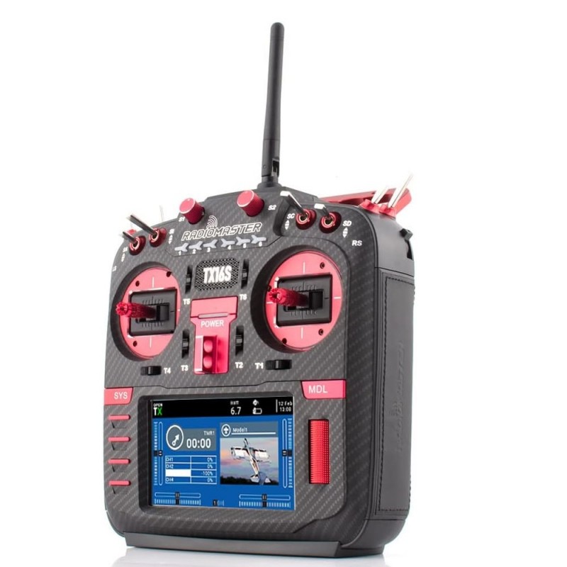 The Radiomaster TX16S Mark II Max Radio Controller (M2) ELRS- Red is a feature-rich and versatile radio transmitter designed to meet the needs of experienced RC users and enthusiasts, especially those looking for long-range performance and advanced customization options. It integrates seamlessly with ExpressLRS technology, offering high-performance and low-latency communication.