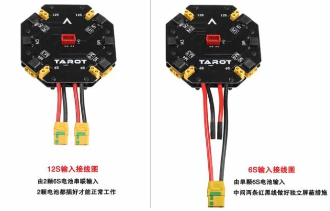 2. Support two 6S batteries in series into 12S voltage input, also can directly input one 6S battery.