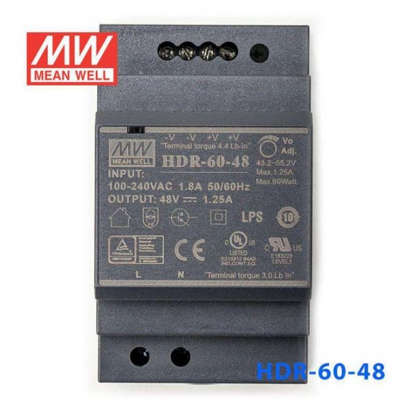 HDR-60-48 Mean well SMPS - 48V 1.25A 60W Din Rail Metal Power Supply