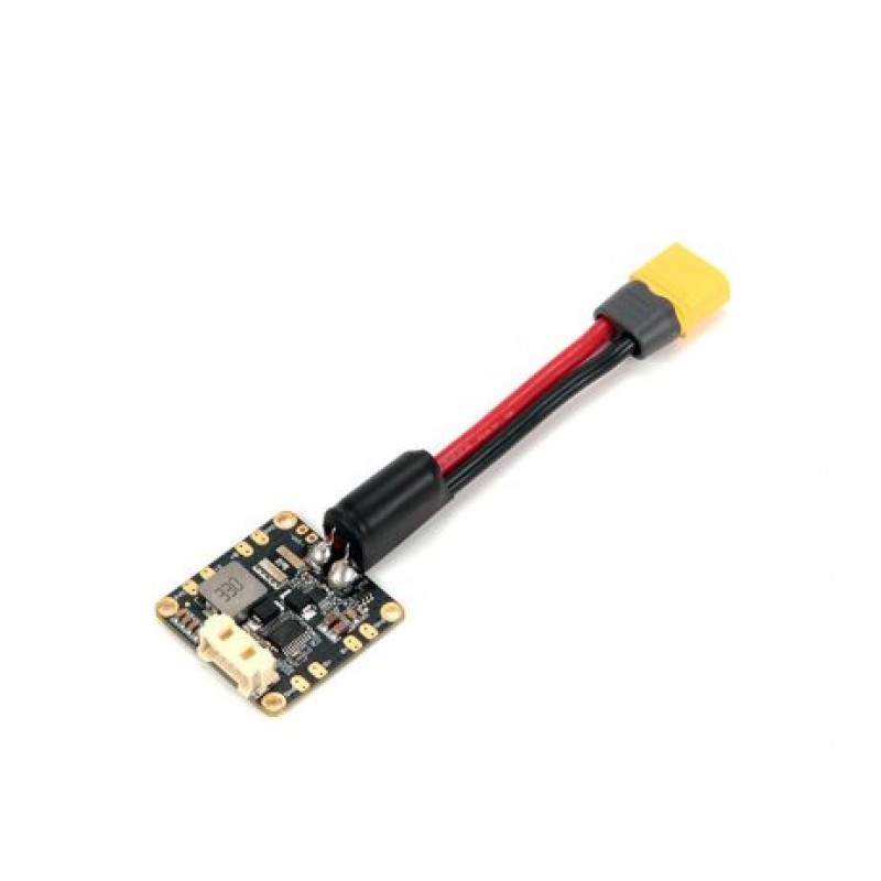 The on-board switching regulator outputs 5.2V and a maximum of 3A from LiPo batteries up to 14S. The Power Module comes completely assembled with a XT60 connector and a capacitor. The Molex 2.00mm pitch CLIK-Mate Wire-to-Board connector is rated for 3.0A current per contact.
