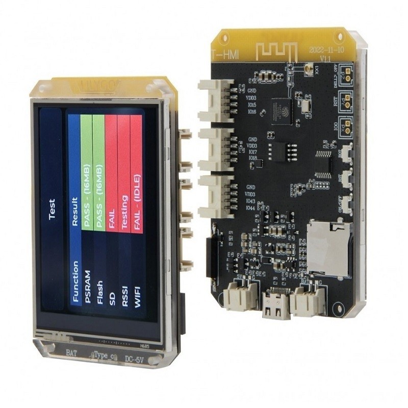The LilyGO T-HMI ESP32-S3 is a versatile touch display module featuring the powerful ESP32-S3 microcontroller. With a 2.8-inch touchscreen interface, it offers a user-friendly experience for various applications. The ESP32-S3 ensures reliable wireless connectivity, supporting both Wi-Fi and Bluetooth. Its compact design makes it suitable for portable projects, IoT applications, and embedded systems. The touch display facilitates interactive control, while the ESP32-S3s capabilities make it ideal for diverse projects, ranging from smart home devices to industrial automation. Overall, the LilyGO T-HMI ESP32-S3 Touch display combines functionality and compactness, making it a valuable component for electronic projects.