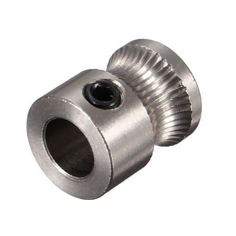 This MK7 Extruder Drive Gear, although being very small in size, is an important part of an extruder system. It is the part that fits onto the shaft of NEMA 17Stepper Motorsto grip the filament and push it towards the hot-end. With a build-in grub screw that secures it tightly to the shaft, while the carefully machined thread on the outside ensures a strong grip without unnecessary damage to the filament.