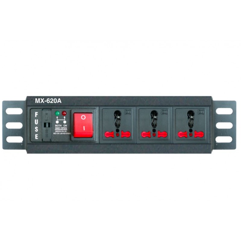 MX power strip with 3 universal 15 Ampere sockets and built in fuse. MX power strip with 3 universal 15 Ampere sockets guarantees safe operation of your electrical equipment or devices such as computers, telecommunication, video and audio etc.
