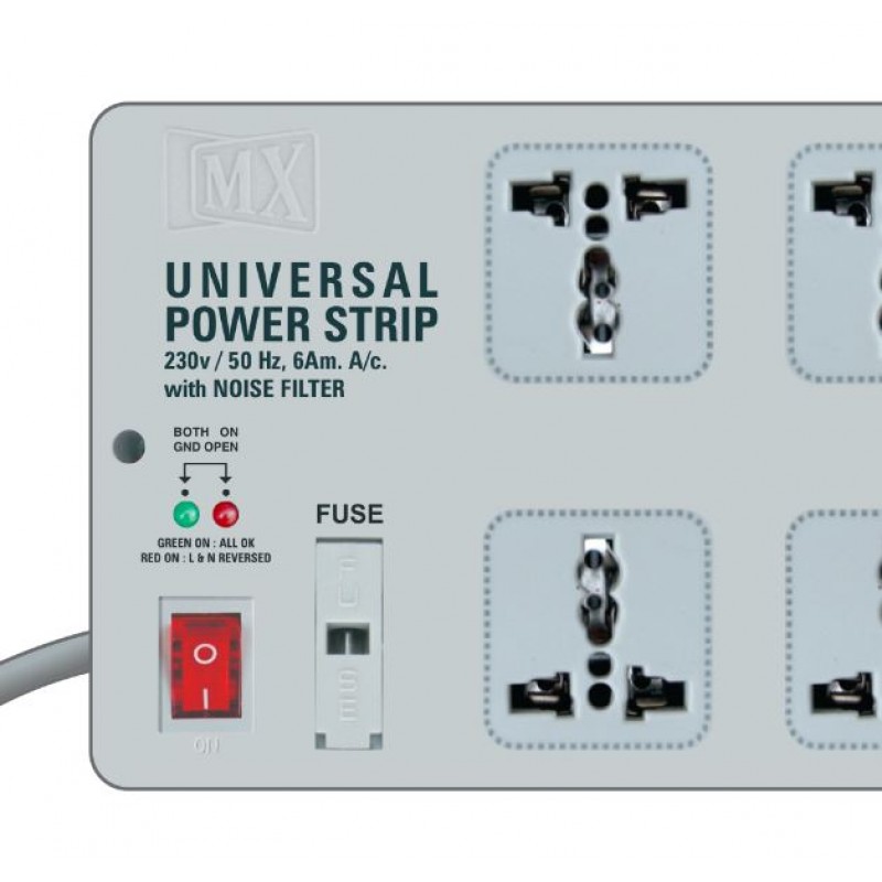- MX power strip with 6 universal sockets has Noise filter