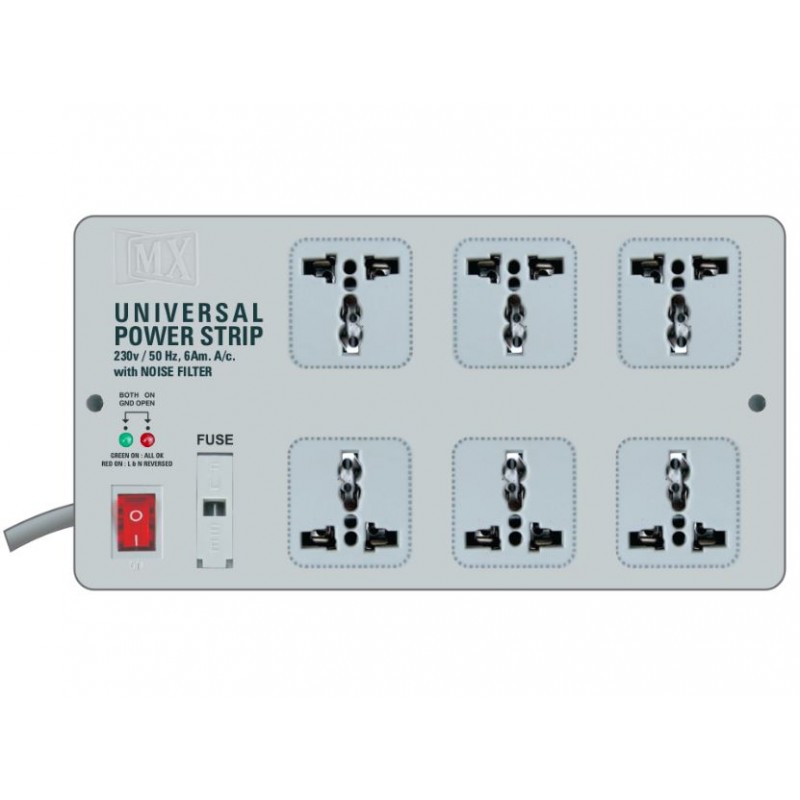 MX power strip with 6 universal sockets and built in fuse.MX power strip with 6 universal sockets guarantees safe operation of your electrical equipment or devices such as computers, telecommunication, video and audio etc.