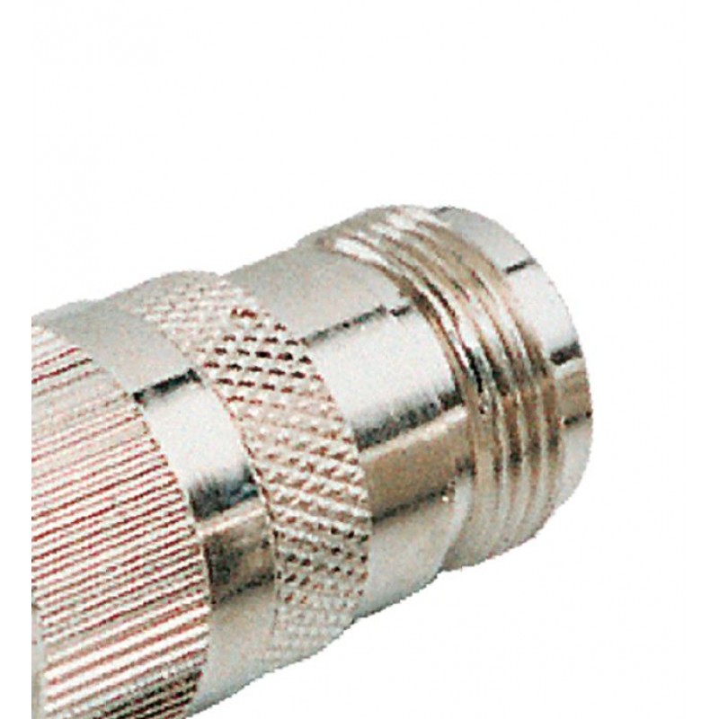 - MX N Male to N Female connector adaptor has threaded coupling nut.