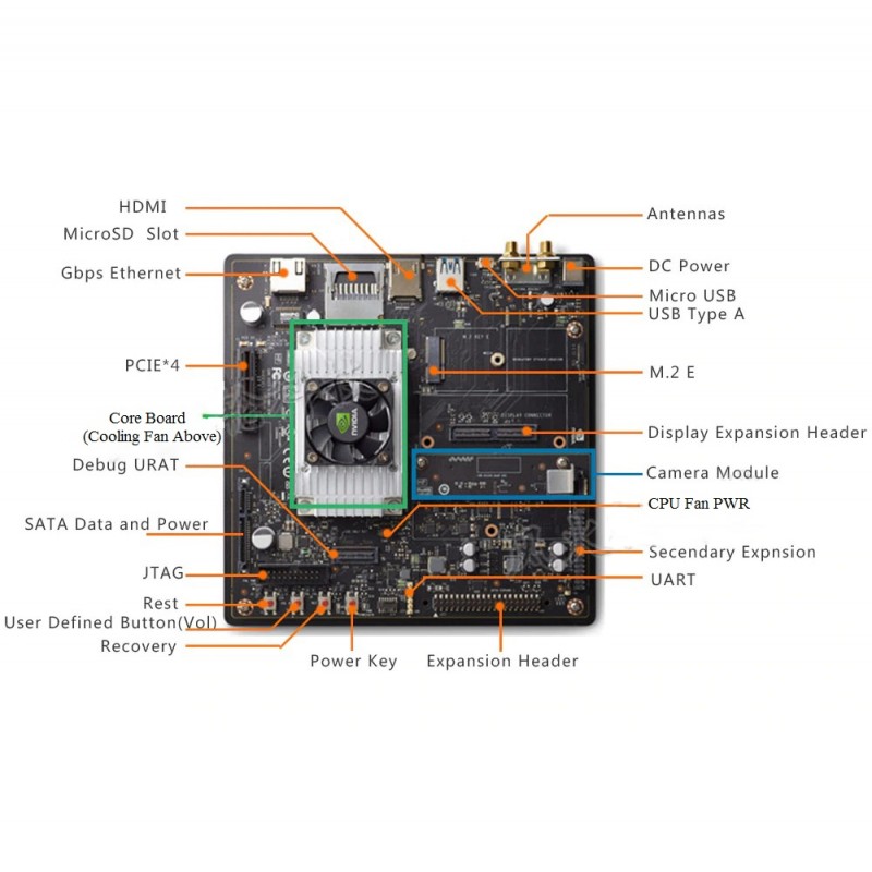 - Developer Kit for the Jetson TX2 module, Includes Jetson TX2 module with NVIDIA Pascal GPU, ARM 128-bit CPUs, 8 GB LPDDR4, 32 GB eMMC, Wi-Fi and BT Ready