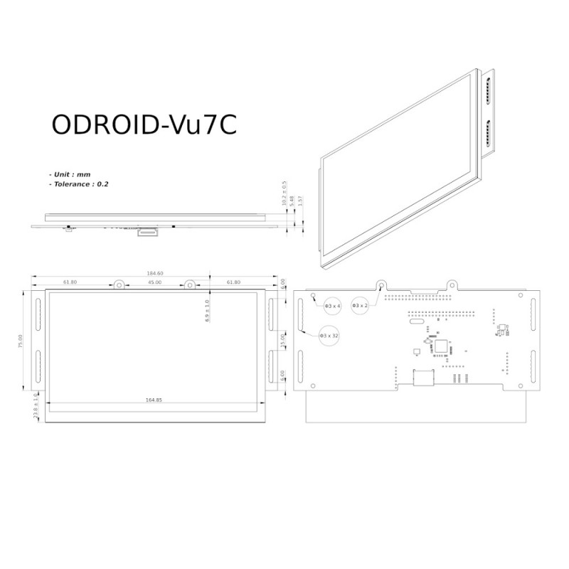 - High-Resolution Display: The ODROID-VU7C features a 7-inch LCD screen with a crystal-clear resolution of 1024600, ensuring vibrant visuals and sharp details.