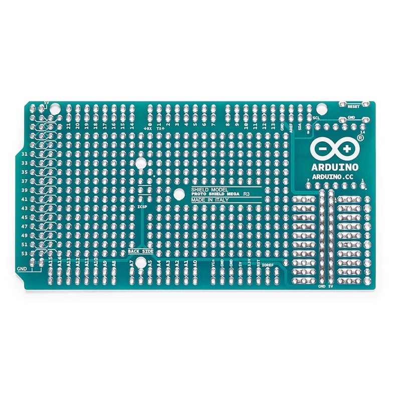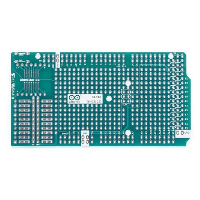 The Official Arduino Mega Proto Shield Rev3 is a versatile prototyping board designed to expand the capabilities of the Official Arduino Mega. This shield provides a convenient platform for building custom circuits and projects, featuring a grid of prototyping area with solderable pads. It is equipped with multiple I/O pins that connect directly to the Mega, allowing for easy integration of various components such as sensors, LEDs, and displays. The shield also includes additional features like a power supply circuit, allowing users to power their projects directly from the Arduino. Its robust design and compatibility make it an ideal choice for hobbyists, makers, and developers looking to create and test new ideas efficiently.
