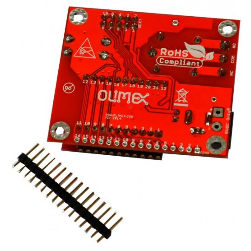 - The row of 16 pinholes at 0.1 step with all ESP8266 signals accessible; male-male 16-pin connector included