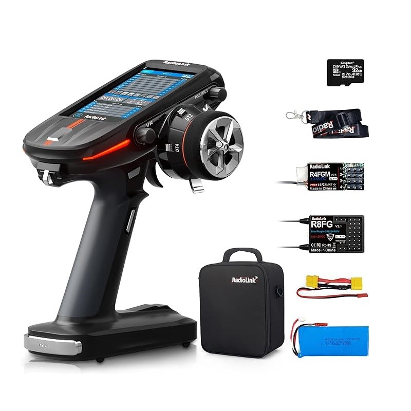 The Radiolink RC8X controller paired with the R8FG and R4FGM receivers offers an exceptional combination of precision control and reliable communication for remote-controlled vehicles and aircraft. The RC8X features a ergonomic design and intuitive interface, providing pilots and drivers with comfortable and efficient operation. With its advanced frequency hopping spread spectrum technology, the system ensures stable and interference-free signal transmission, even in crowded radio environments.