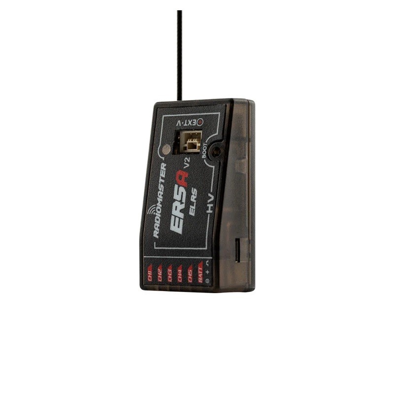 The ER5A V2 ELRS receiver can drive up to 5 servos and has built-in receiver voltage telemetry and battery telemetry with the ability to automatically detect which voltage input to use. It is designed for aircraft applications.