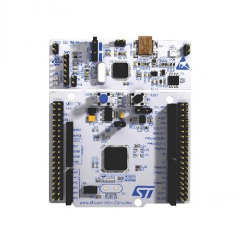 The STM32 Nucleo board provides an affordable and flexible way for users to try out new concepts and build prototypes with the STM32 microcontroller, choosing from the various combinations of performance, power consumption, and features. The Arduino Uno V3 connectivity support and the STMICROELECTRONICS NUCLEO headers allow to expansion easily the functionality of the STM32 Nucleo open development platform.