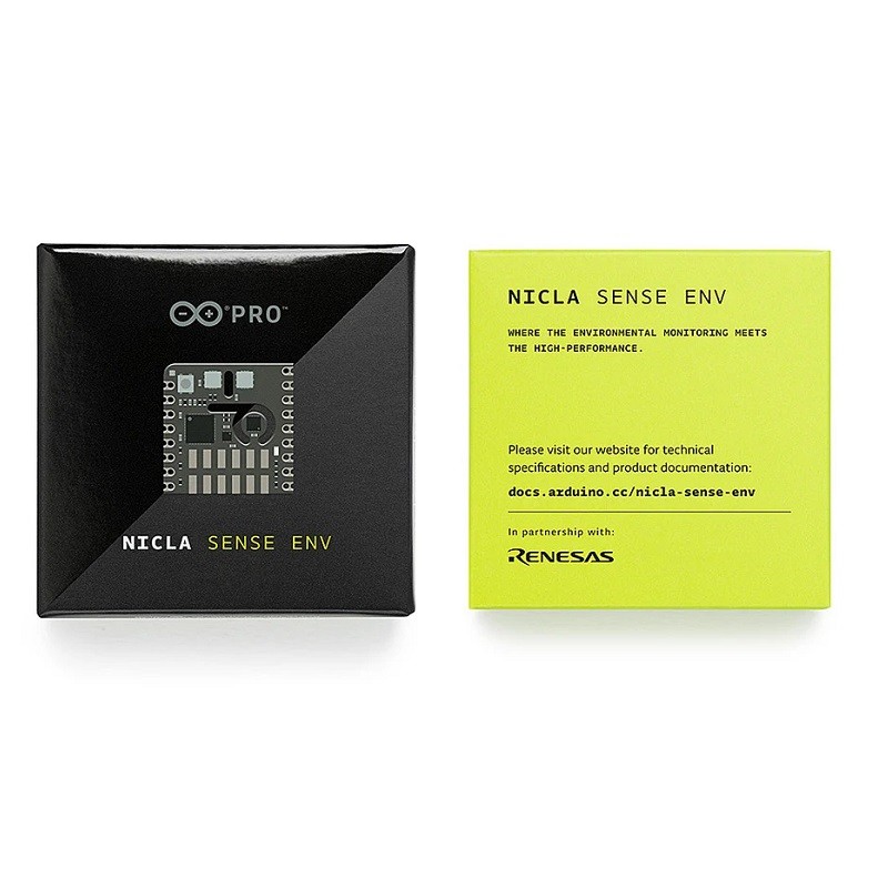 Expand your MKR projects with Official Arduino Nicla Sense Env ABX00089, and start sensing the world around you. Add a single module to combine three state-of-the-art sensors from Renesas with the simplicity of integration and scalability of the Official Arduino ecosystem: an ultra-low power temperature and humidity sensor, and two smart and industrial-grade gas sensors, to evaluate air quality both in indoor and outdoor environments. Thanks to its tiny size (the Nicla familys signature 22.86 x 22.86 mm) and robust design, Official Arduino Nicla Sense Env is ideal for projects that need to combine sensor fusion with the high computational power of the Portenta family or versatility of a MKR solution.