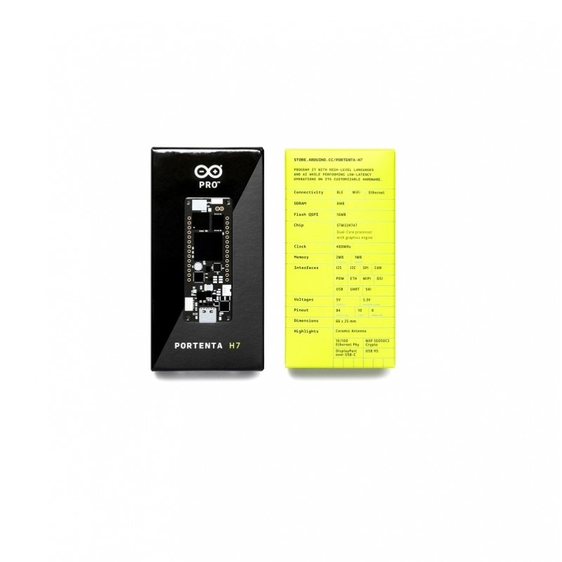 Official Arduino Portenta H7 Dual Core AI & IoT Development Board ABX00042 simultaneously runs high-level code along with real-time tasks. The design includes two processors that can run tasks in parallel. For example, is possible to execute Official Arduino compiled code along with MicroPython one, and have both cores to communicate with one another. The Portenta functionality is two-fold, it can either be running like any other embedded microcontroller board or as the main processor of an embedded computer. Use the Portenta Carrier board to transform your H7 into an eNUC computer and expose all of the H7 physical interfaces.