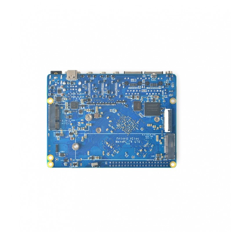 The NanoPC-T6 LTS is a high-performance, open-source platform for edge computing, designed and developed by the FriendlyElec team. Powered by Rockchips RK3588 processor, it comes with 4GB LPDDR4x RAM and an optional 32GB eMMC flash. The board features dual 2.5G Ethernet ports and supports multiple operating systems including OpenMediaVault, FriendlyWit, Android, Android TV, Debian, and Ubuntu. With GPU and VPU acceleration, it is capable of handling demanding multimedia and AI workloads. Measuring just 110 x 80 mm, the compact T6 LTS also offers an optional CNC metal case for added durability.