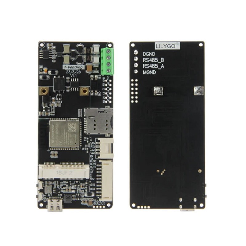 The LILYGO T-Vending ESP32-S3 IOT Development Board combines versatile connectivity with robust features. It integrates WiFi, Bluetooth, RS485, and PCIe interfaces, supporting T-PCIE SIM modules. Ideal for IoT applications, it offers seamless wireless connectivity and expansion capabilities, making it suitable for diverse industrial and commercial uses requiring reliable communication and data exchange.
