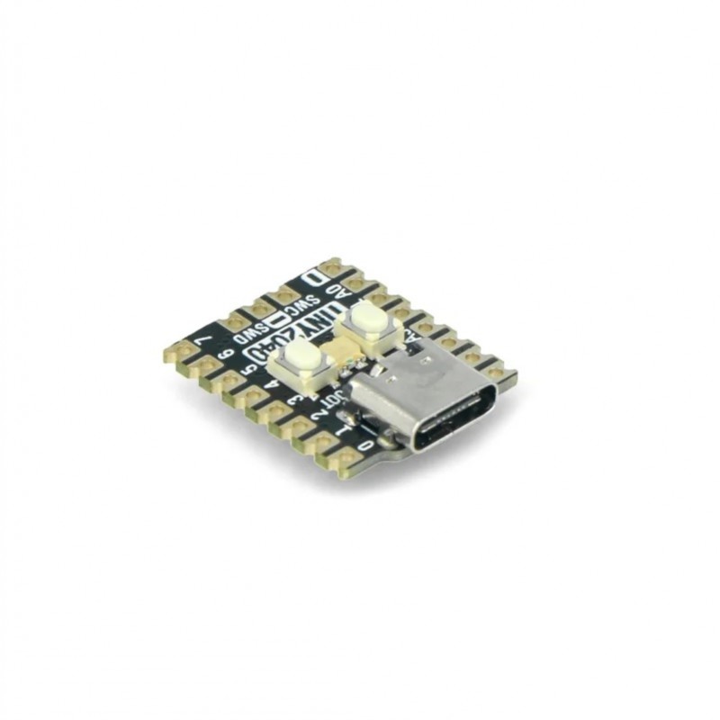Its compatible with firmware built for the Raspberry Pi Pico but offers a reduced number of pins due to its size.