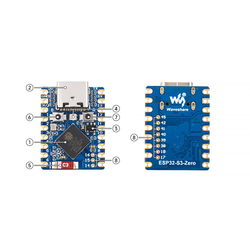 1 x Waveshare ESP32-S3 Mini Development Board, Based on ESP32-S3FH4R2 Dual-Core Processor, 240MHz Running Frequency, 2.4GHz Wi-Fi & Bluetooth 5