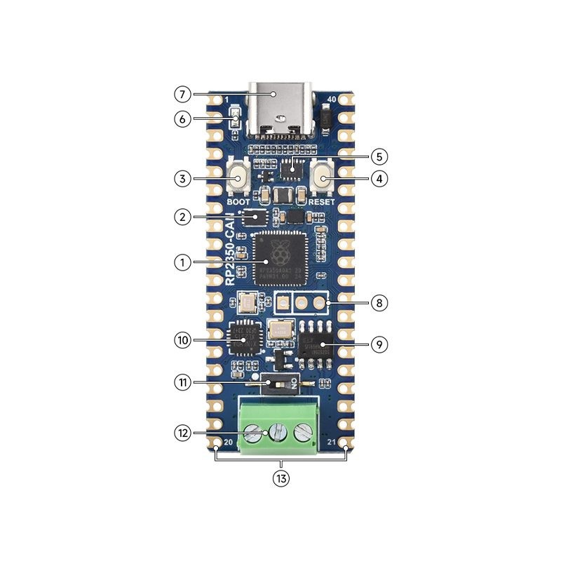 The RP2350A microcontroller offers reliable processing power, while the XL2515 CAN controller ensures high-speed data transfer and robust fault tolerance. Ideal for developers working on CAN bus-based applications, this board supports a variety of use cases, making it a versatile tool for embedded and networked projects.