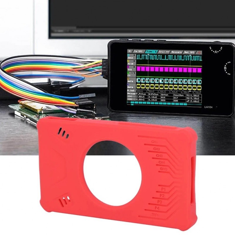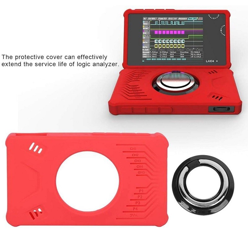 This is Red LA104 Silica Gel Protective Shell designed for the LA104 pocket-sized handheld oscilloscope. Equipped with a ring holder, it can be placed at an angle on the desktop. The protective cover can effectively extend the life of the logic analyzer. Very useful for displaying waveform, operation and use, practical accessories. Can protect the logic analyzer from dropping, scratching the lens and damaging the LCD. The case is made of durable silicone material and is suitable for the LA104 logic analyzer.