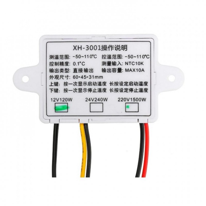 This is XH-W3001 DC 24V 240W Digital Temperature Controller Microcomputer Thermostat Switch. Its a temperature measurement and Controller tool with high accuracy and precision at a very low cost. Furthermore, it offers temperature control range from -50C to +110C with a precision of 0.1C. The LED display of the switch shows the results clearly, so you can directly install or embed the XH-W3001 in the industrial control equipment panel conveniently.
