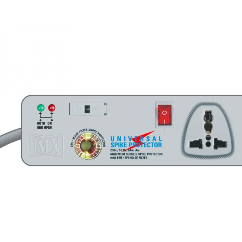 - MX 4 SOCKET UNIVERSAL SPIKE PROTECTOR guarantees safe operation of your electrical equipment or devices such as computers, telecommunication, video and audio etc.