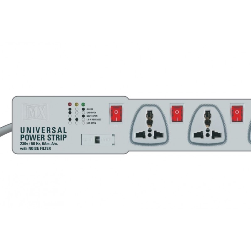 - MX Power strip with 6 universal sockets has Noise Filter.