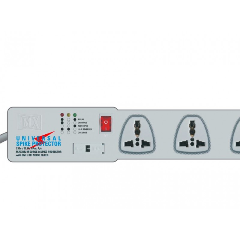 - MX 6 OUTLET UNIVERSAL SPIKE PROTECTOR guarantees safe operation of your electrical equipment or devices such as computers, telecommunication, video and audio etc.