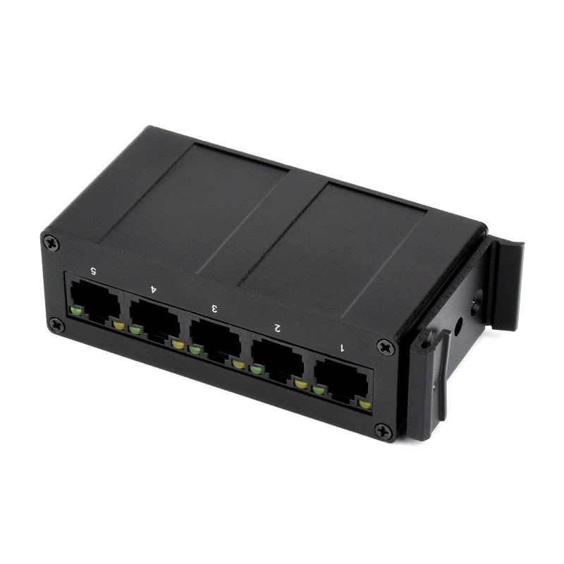 1 x Waveshare Industrial 5P Gigabit Ethernet Switch Full-Duplex 10/100/1000M DIN Rail Mount without Power Adapter